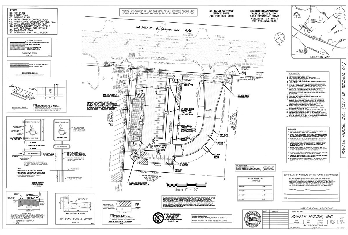 Our engineering and surveying departments continue to do much of the conceptual planning and surveying on the expansive Gateway commercial project in Barrow County. We have been involved with many phases of the development, from the engineered site planning, boundary and topography work, construction staking and final as built. These are just some examples of our work in Gateway.